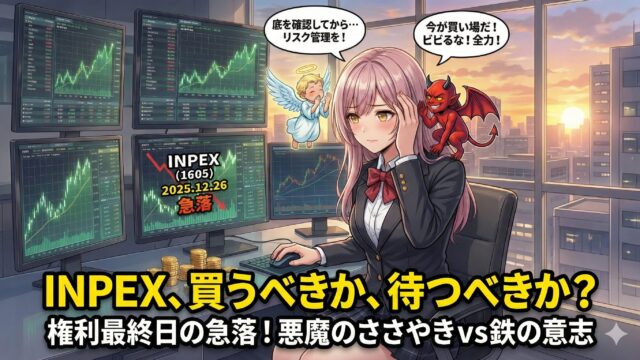 株式投資 【INPEX】権利最終日にまさかの急落!?「しめしめ」…私のシナリオ通りです。 2025年12月26日 kurochan みなさん、こんにちは。「あれもしたいこれもしたい」ブログのkurochanです。 「更新継続のために応援クリックをお願いします」 …