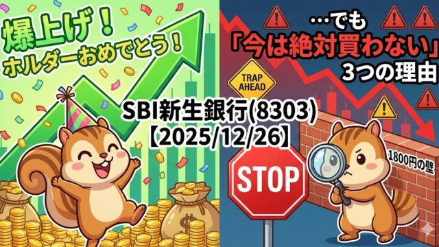 株式投資 SBI新生銀行(8303)爆上げ!ホルダーおめでとう!…でも私が「今は絶対買わない」3つの理由【2025/12/26】 2025年12月26日 kurochan みなさん、こんにちは。「あれもしたいこれもしたい」ブログのkurochanです。 「更新継続のために応援クリックをお願いします」 …