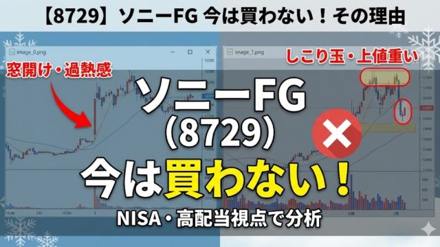 株式投資 【8729】ソニーFG急騰!?それでも私が「今は絶対に買わない」3つの理由(12/26チャート分析) 2025年12月26日 kurochan みなさん、こんにちは。「あれもしたいこれもしたい」ブログのkurochanです。 「更新継続のために応援クリックをお願いします」 …