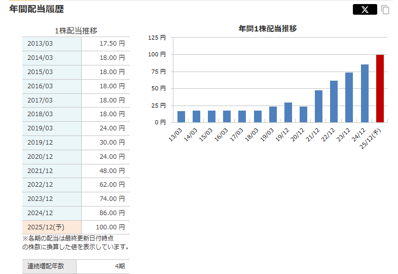 今年の年初、まだ安かった時期に仕込めたことが最大の強みです。 仮に上記のリスクが顕在化して株価が20〜30%暴落したとしても、私の買値まではまだ余裕があります。この「含み益というクッション」があるからこそ、多少の嵐が来ても、配当をもらいながらやり過ごすことができます。
