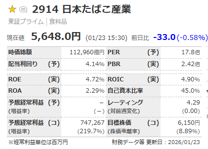 もちろん、世界的な禁煙志向というリスクはありますが、この「キャッシュ創出力」がある限り、私たちの新NISAポートフォリオにおける「最強のATM」としての地位は揺るがないと考えています。