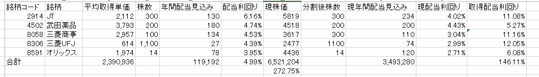 最初は単純にこう考えていました。 「武田薬品と三菱UFJを、それぞれ100株ずつ特定口座に残せば金額的にちょうどいいかな?」