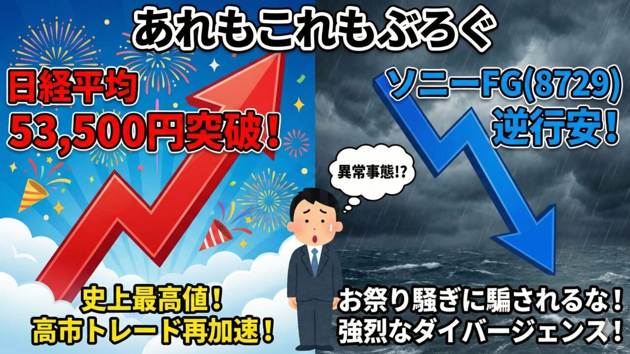 「皆さん、今日の大発会……ならぬ『大爆発』、見ましたか!?日経平均5万3500円。高市トレード再燃で、日本株はまさに異次元の領域に入りました。