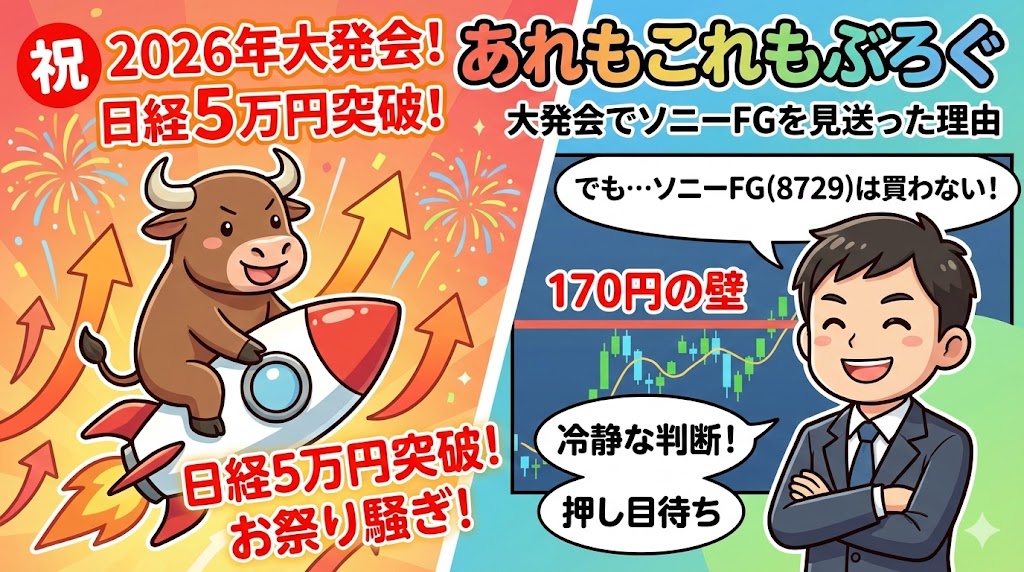 【2026年大発会】日経平均5万円突破の狂乱!それでも私がソニーFG(8729)を見送った理由