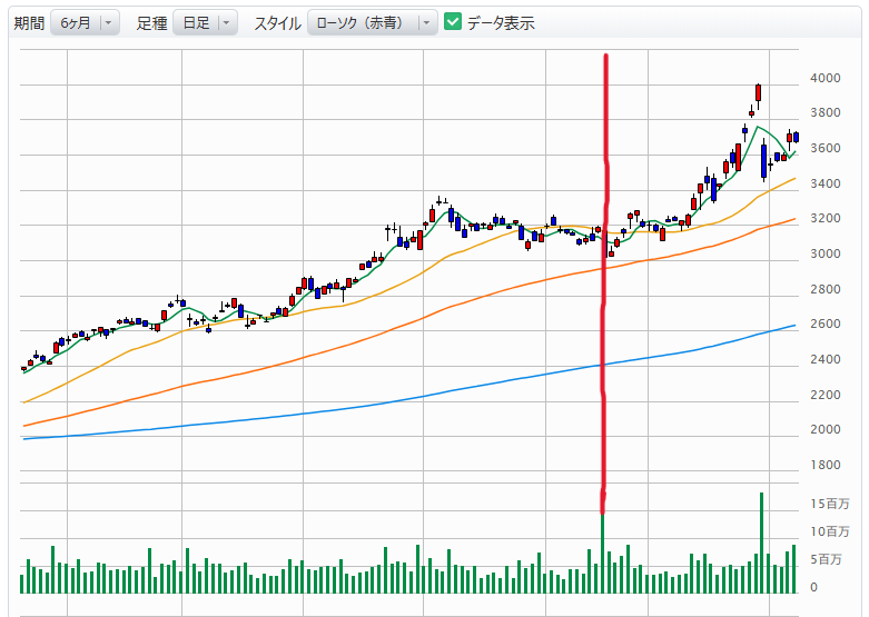 1月6日に3,189円という強い値動きを確認し 、翌7日に100株買い増しを実行したのです 。