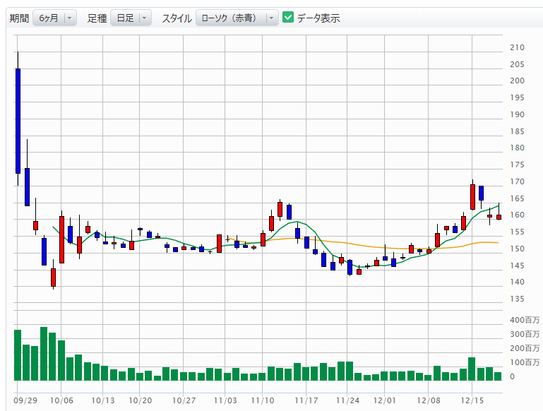 やはり、いました。 株価が上がろうとすると、165円付近で頭を押さえつけられる動き。まさに「通せんぼ」状態です。