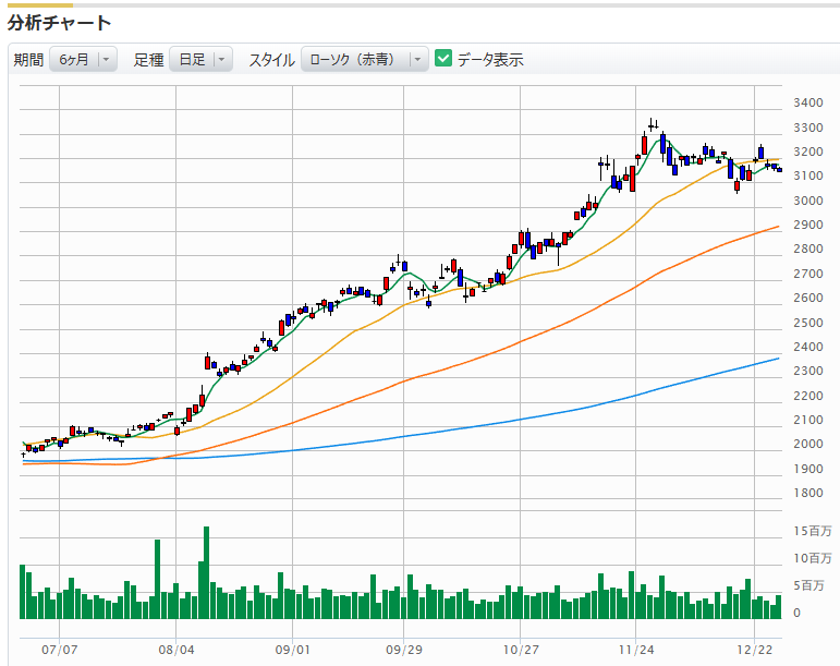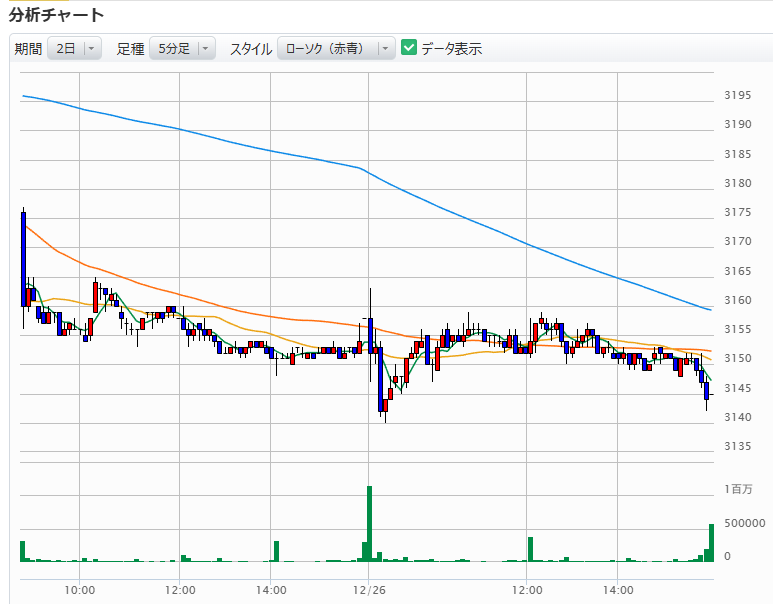 即座の滑り台 開始早々、大きな売りが出て株価は急降下。私が意識していた「3150円」のラインもあっさりと割り込みました。