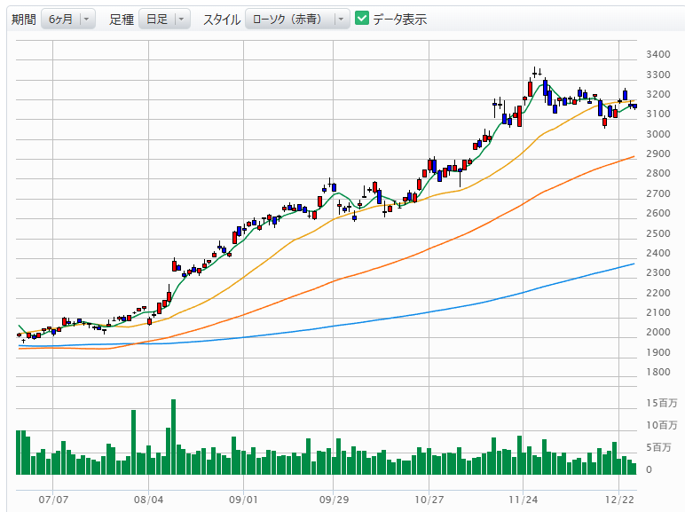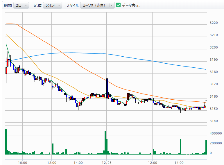 値動き: 3150円〜3170円近辺での小幅な揉み合い。